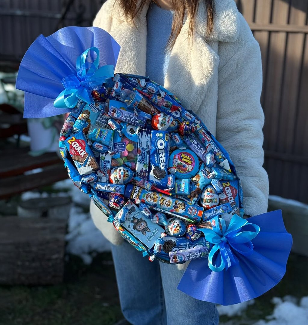 Брав великий набір для дружини на день народження. Вона любить кіндери, тож був точний влучний вибір. Усередині багато різних солодощів, і виглядає це просто “вау”. Навіть донька просила сфотографуватись із ним. Дуже задоволені покупкою!